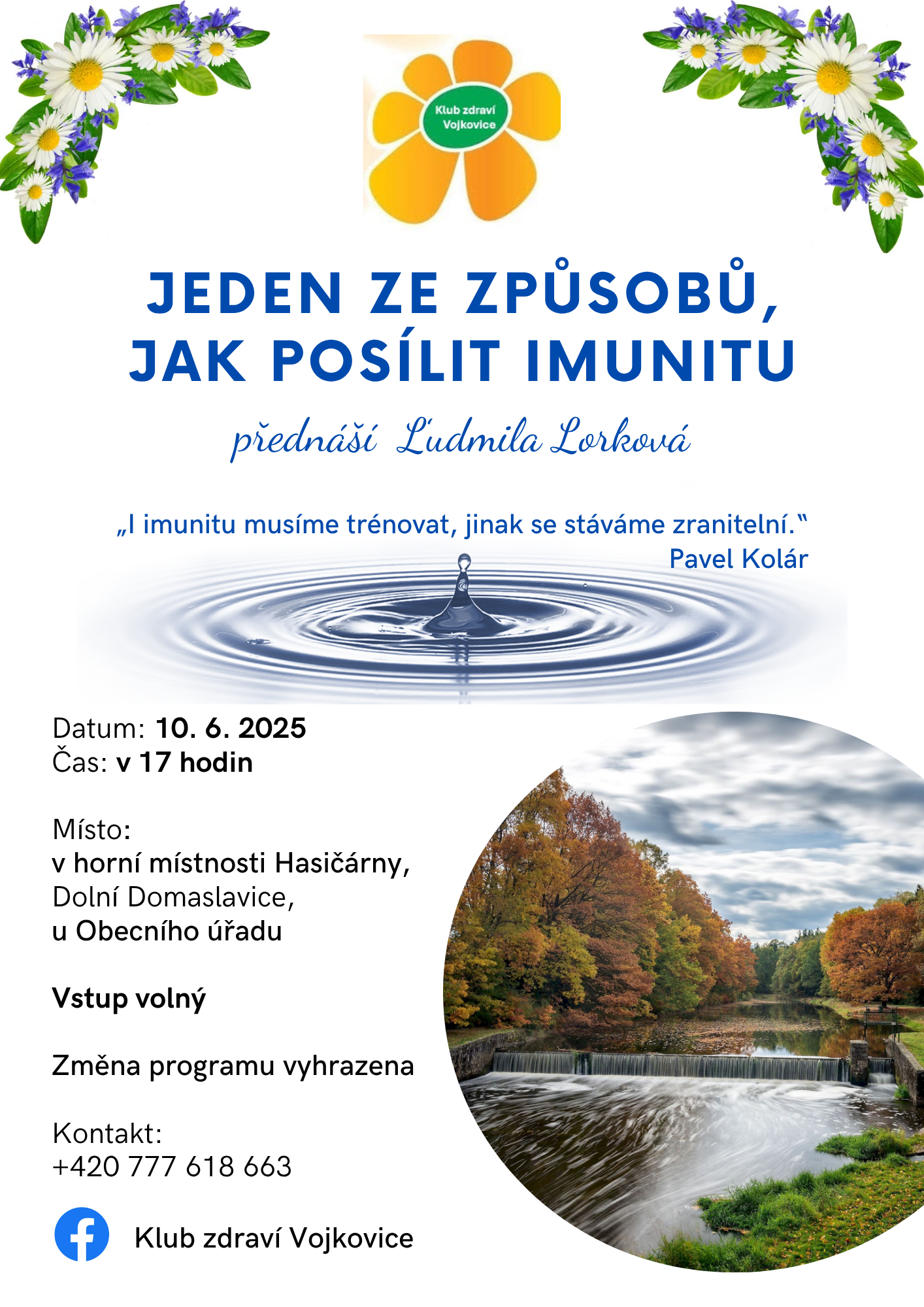 Zveme vás na klub zdraví, tentokrát na téma: "Jeden ze způsobů, jak posílit imunitu" s Ludmilou Lorkovou. Přijďte v úterý 10.6. od 17 hodin do Dolních Domaslavic.