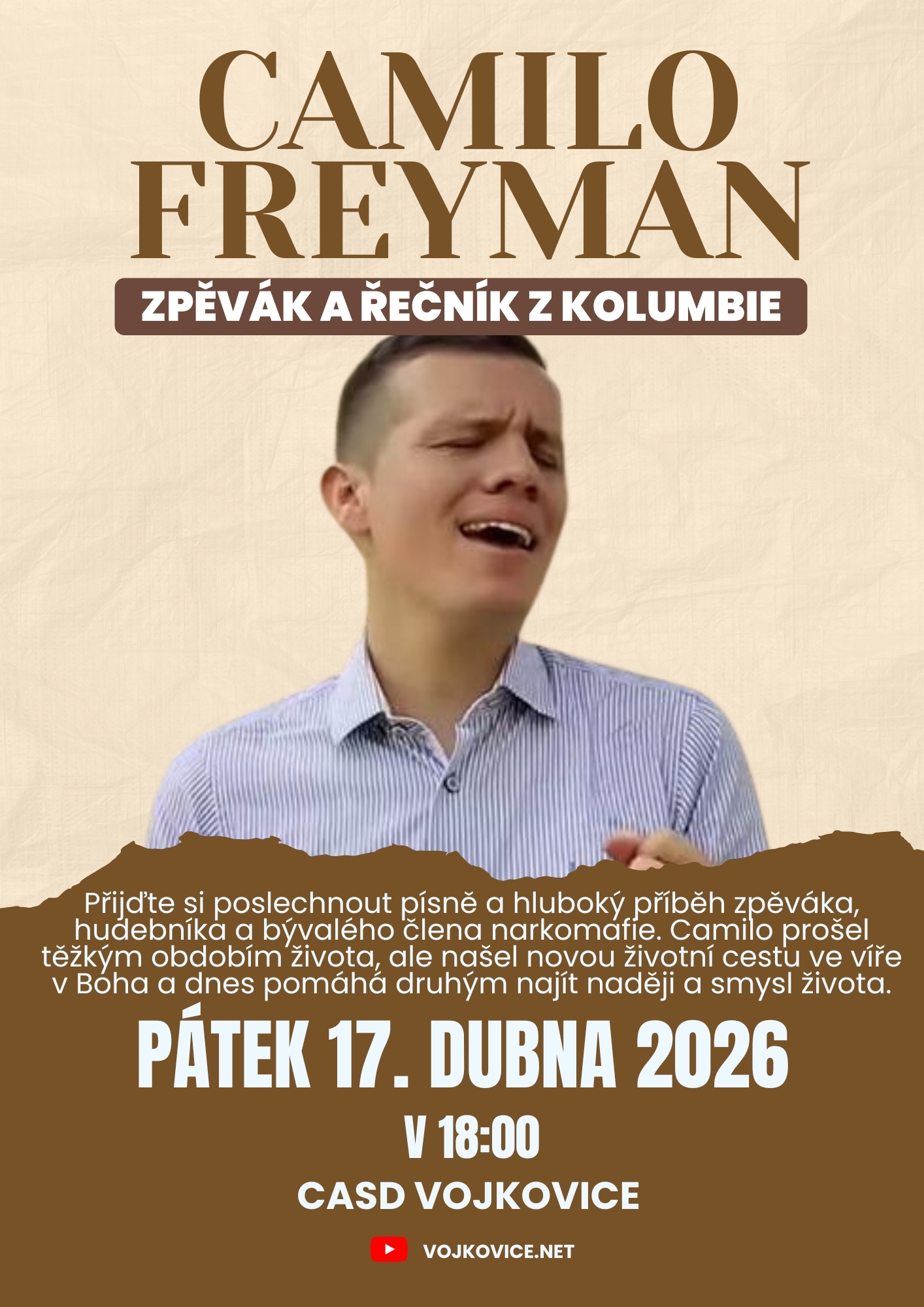 Srdečně Vás zveme na jedinečné setkání s výjimečným hostem – novodobým misionářem a zpěvákem Freymanem Camilem.